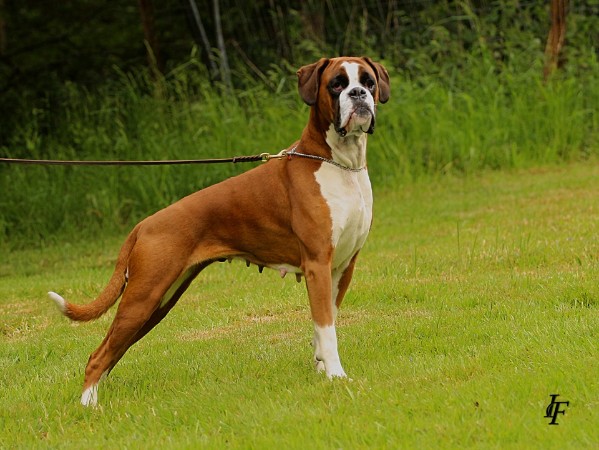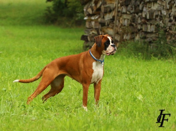 Wieder genau ein Jahr später schenkte uns Daphne unseren fehlerfreien I-Wurf. 3 Rüden und 2 Hündinnen hat sie liebevoll betreut.
